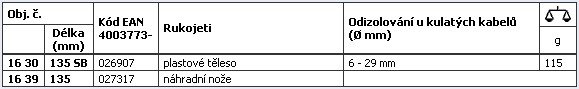 • odstraňování plášťů kabelů kruhového průřezu z PVC, gumy, silikonu, PTFE