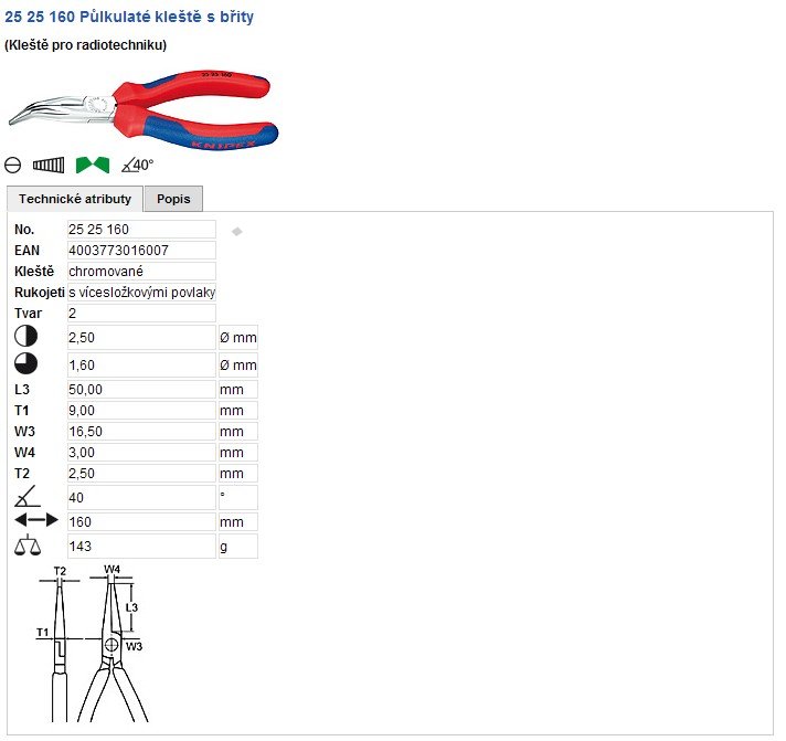 Kleště půlkulaté s břity vyhnuté 40° 160mm pro radiotechniku