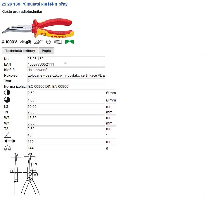 Kleště půlkulaté s břity vyhnuté 40° 160mm 1000V VDE pro radiotechniku