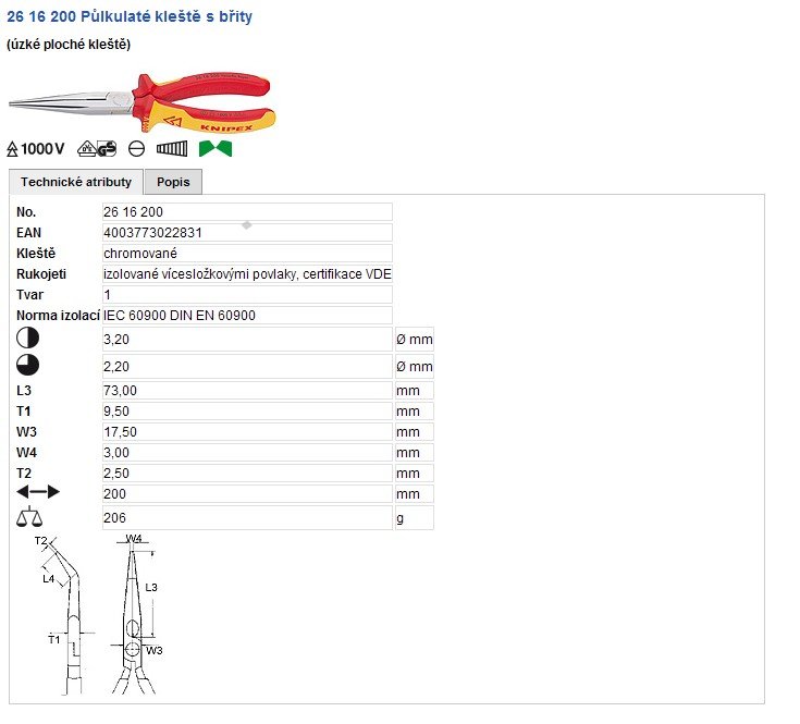 Kleště půlkulaté s břity 200mm 1000V VDE