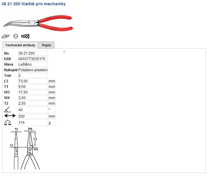 - vysoká pevnost čelistí/hrotů kleští v ohybu