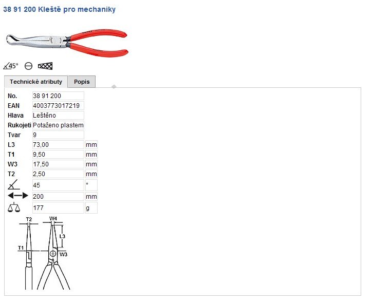 • vysoká pevnost čelistí/hrotů kleští v ohybu