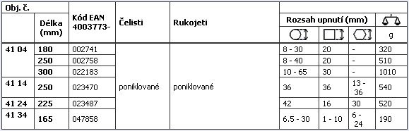 • čelisti na materiál kruhového průřezu, s čelistí pro stříhání drátů