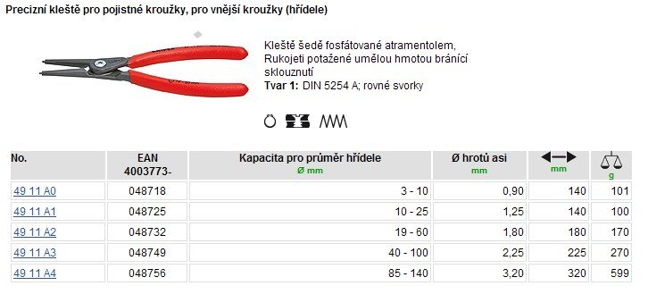 KN-4911A1 Kleště segerové precizní A1 vnější rovné 10-25/140mm 6