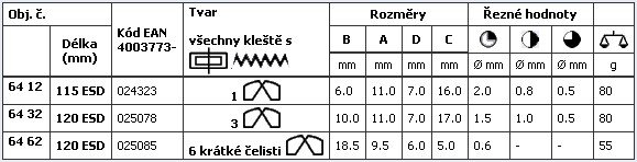 • kleště pro nejjemnější stříhací práce např. v elektronice a jemné mechanice