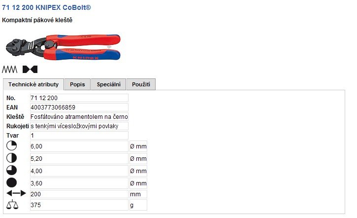 • stříhají materiály jako jsou čepy, hřebíky, nýty atd. do O 5,2 mm