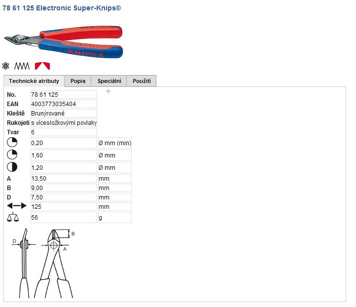 KN-7861140 Kleště štípací boční 125mm pro elektroniku 1