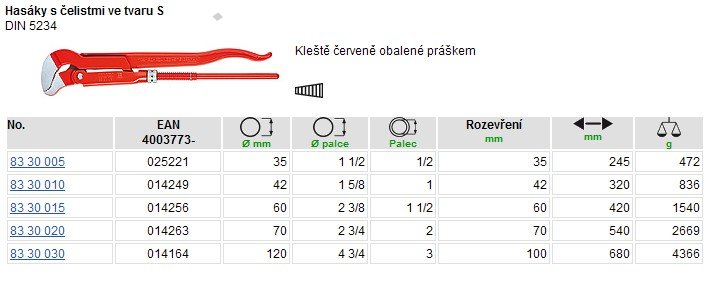 KN-8330020 Hasák s "S" čelistmi 2" 1