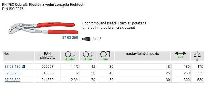 KN-8703250 Kleště blitzky 250mm "Cobra" 8703250 1