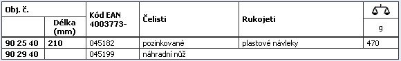 • nůž: speciální nástrojová ocel, kalená v oleji, vyměnitelná