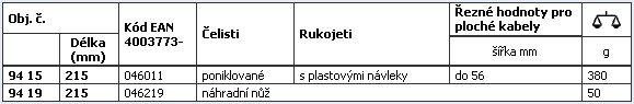 • čepel: standardní lichoběžníková čepel, vyměnitelná