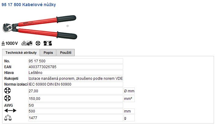Nůžky na kabely 500mm 1000V VDE