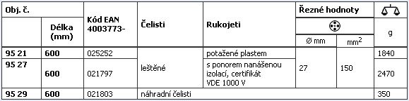 • nožová hlava: chromvanadová elektroocel ve zvláštní jakosti, kovaná, kalená v oleji