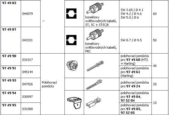 Čelisti pro konektory typu FSMA, ST, SC a STSC/K