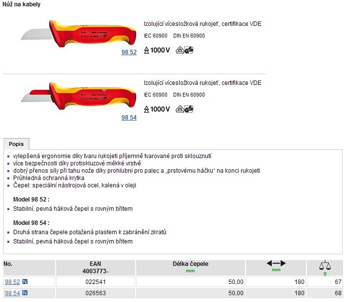 • druhá strana čepele potažená plastem k zabránění zkratů