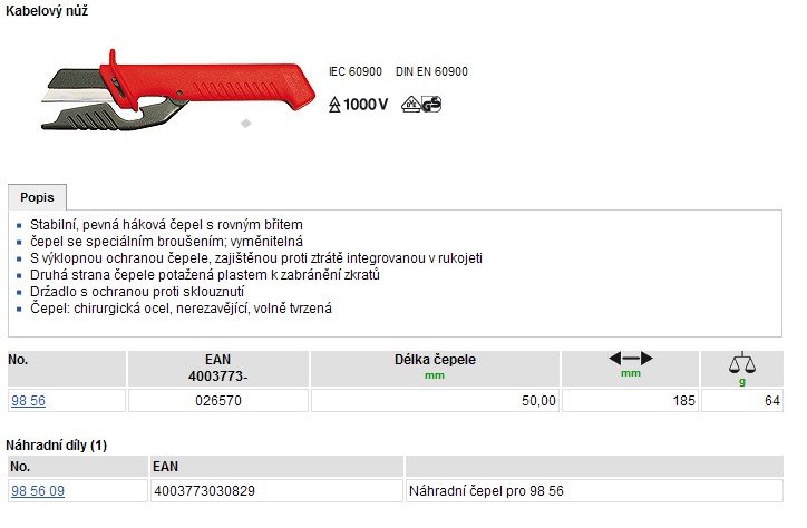 • druhá strana čepele potažená plastem k zabránění zkratů
