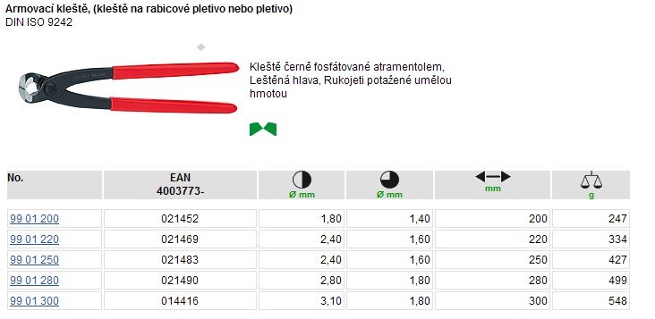 KN-9901220 Kleště armovací 220mm 99 01 220 6