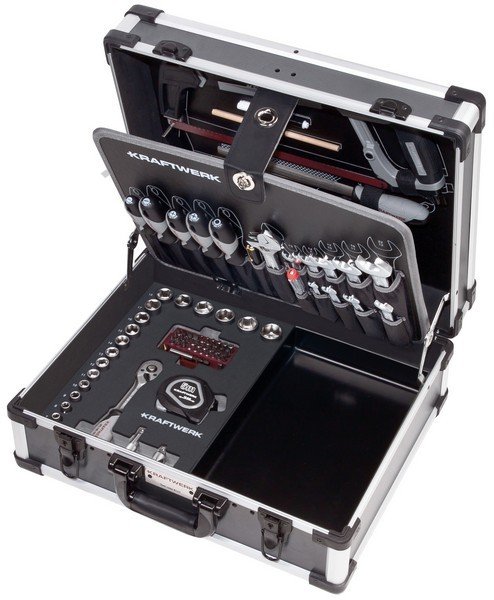 - 189 dílná základní sestava nářadí uložena v 7 speciálních vložkách z pěny (60 x 40 / 20 x 40 cm) - 3 plně vybavených zásuvek nářadím řady PROFI Line - ráčny + nástavce 1/4" - 3/8" - 1/2" 4 - 32mm - nástavce bity Inbus + Torx - klíče očkoploché - kleště kombinované, štípací, blitzky HIGHTECH - šroubováky ploché + PH - kleště, pilka, pilníky, kladivo, palička, sekáče, vyražeče - dílenský vozík MADE IN GERMANY 7 zásuvek - horní kryt je vyrobený z materiálu odolného vůči rozpouštědlům a s integrovanými úložnými přihrádkami - perforované boční stěny - velmi stabilní dvouplášťová ocelová konstrukce - 7 zásuvek s kuličkovými ložisky, plně výsuvné - pojistka zabraňující současnému otevření více zásuvek - centrální zamykání všech zásuvek - 2 pevné a 2 otočné kolečka - nosnost zásuvky: 45 kg - celková nosnost: 450 kg (bez pohybu)