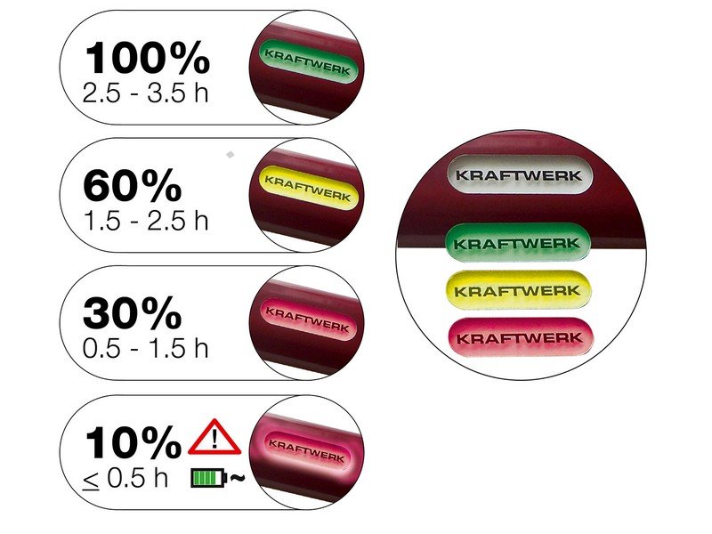 • ukazatel stavu baterií s barevným ukazatelem v rukojeti