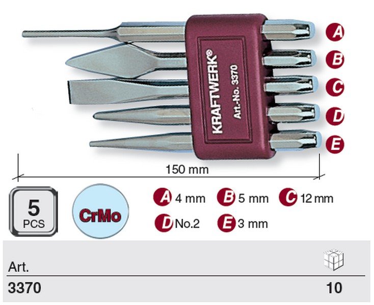• 5-ti dílná souprava sekáčů, průbojníků a vyražečů