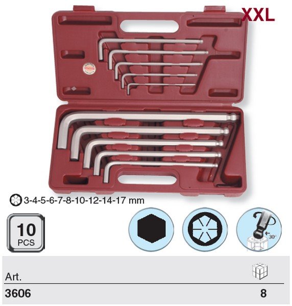 - 10-dílná souprava klíčů Inbus 3-17mm s kuličkou
