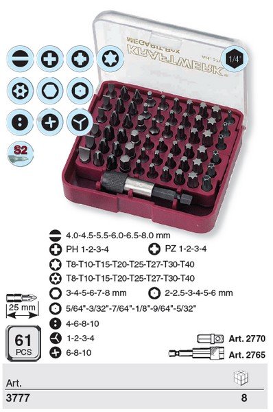 Sada bitů 1/4" Global-Bit-Box /25mm 61ks PROFI Line
