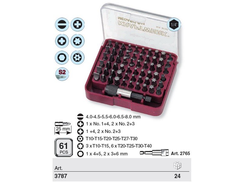 Sada bitů 1/4" Mega-Bit-Box /25mm 61ks PROFI Line