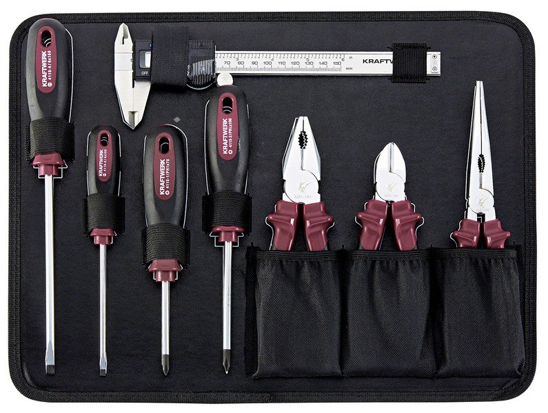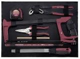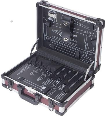 - nářadí je uloženo ve speciálním pěnovém prolisu EVA a v gumách na jednotlivých vložkách nebo ve víku kufru