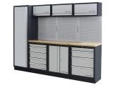 AKCE KW Dílenská stěna 2640x488x2000mm 9 zásuvek a skříňka, deska Multiplex MOBILIO GREY dílenský nábytek