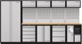 AKCE KW Dílenská stěna 3635x488x2000mm, deska Multiplex MOBILIO GREY dílenský nábytek