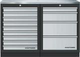 AKCE KW Dílenský stůl 1360x458x948mm, 13 zásuvek, deska NEREZ MOBILIO GREY dílenský nábytek