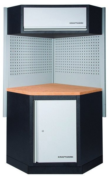 AKCE KW Dílenská stěna rohová 894/894x488x2000mm, deska Multiplex MOBILIO GREY dílenský nábytek