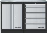 AKCE KW Dílenský stůl 1360x458x948mm, 2 dveře + 5 zásuvek, deska NEREZ MOBILIO GREY dílenský nábytek