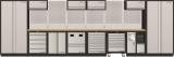 AKCE KW Dílenská stěna 5910x488x2000mm, 24 zásuvek, 7 skříněk a vozík, deska Multiplex MOBILIO GREY dílenský nábytek