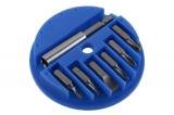 - v plastové kruhové krabičce s otvorem pro vysunutí potřebného bitu