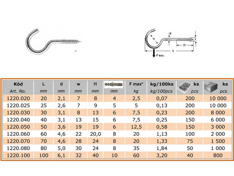 LR-1220.060 Hák s vrutem 60mm Zn 10