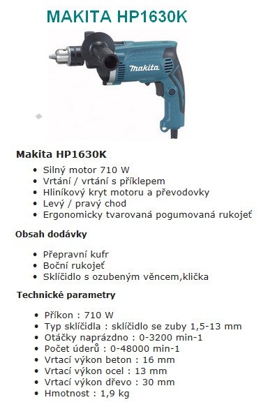 AKCE : Vrtačka příklepová 710W HP1630K + kufr
