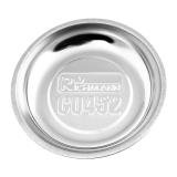 Kulatá magnetická miska o průměru 150 mm je vybavena silným magnetem, potaženým gumou, která zabraňuje poškrábání povrchu. Je určena do dílen a zabraňuje ztrátě kovových částí, např. šroubů při demontáži. Díky magnetu v základně lze misku umístit např. ke karoserii při opravách automobilů bez obav z vyklouznutí. Miska je vyrobena z odolného dvojitě pozinkovaného plechu, pochromovaná a dodatečně vyleštěná.