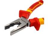 Elektrikářské kleště pro práci s přístroji pod napětím d 1000V splňující všechny požadavky normyVDE 60900. Vyrobené speciálně pro práci na elektrických zařízeních tak, aby byla zajištěna Vašebezpečnost. Čelisti z CrV oceli s leštěným povrchem. Ochrana proti přeskočení jiskry a protisklouznutí ruky.