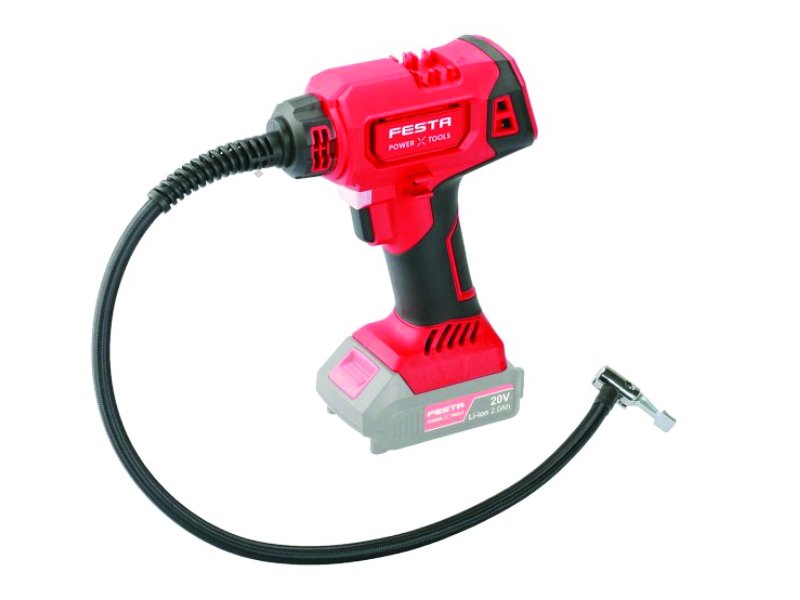 - maximální tlak 8.2bar - hadice 10,5 x 600mm - baterie 20V (2/4/8Ah); nejsou součástí balení - ergonomická pogumovaná rukojeť - podsvícený display manometru - rychloupínací spona na huštění pneumatik - adaptéry + adaptér do autozásuvky