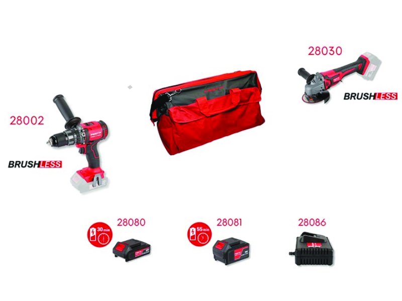 - set AKU FESTA Power tools strojů s výkonnými motory BRUSHLESS s praktickou taškou zdarma - sestava dvou nejběžněji využívaných AKU strojů, stroje jsou součástí systému FESTA SHARE20V s možností využívat Li-ion batarie 2.0 Ah a 4.0 Ah vevšech strojích - součástí sady je i rychlonabíječka a baterie 4.0 a 2.4 Ah - pro běžnou práci je baterie s kapacitou 2.0 Ah (28080) dostačující - nabíjecí čas 40 min., pro práci s předpokladem větší zátěže, doporučujeme použít baterii s kapacitou 4.0 Ah (28081) - nabíjecí čas 90 min Li-ion technologie použitá v bateriích FESTA Power x tools nabízí možnost dobíjet baterie kdykoliv - bez snižování jejich kapacity, u Li-ion baterií také dochází k jen velmi pomalému samovybíjení - stroje v sadě 28002, 28030