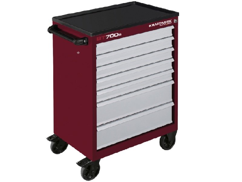 - dílenský vozík BT700s 7 zásuvek Basic Line Germany - speciální edice - červeno-šedé zbarvení - robustní konstrukce s dvojitými stěnami - centrální zámek všech zásuvek, se zámkem z pohledové strany - nosnost na zásuvku: 45 kg - výsuvnost zásuvek: 100% - nosnost (bez pohybu): 450 kg