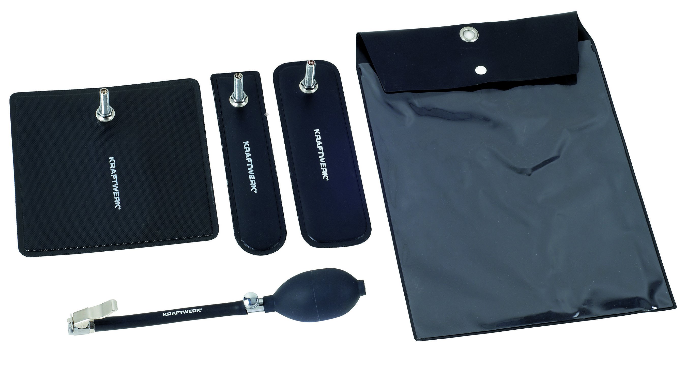 - 4-dílná souprava podpěrných polštářů - pro nouzové otevření - bez poškození laku - ruční čerpadlo s ventilem
