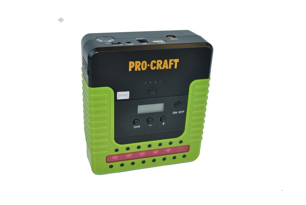- startovací zdroj s funkcí kompresoru - pracovní tlak 3,5 bar, power banky, LED svítilny a LED výstražné svítilny - kompaktní záložní zdroj elektrické energie pro případ nouzového statování vozidla, dobíjecí zdroj mobilního telefonu, tabletu nebo noteboku - nouzová výstražná svítilna - součástí balení je sada startovacích kabelů, redukcí a adapterů pro připojení dalších zařízení - JSAP-12NE zvládne při plném nabití nastartovat vozidlo s el. rozvodem 12V a se zdvihovým objemem motoru do 8000cm3