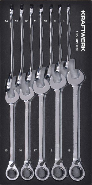 - 12 dílná sada ráčnovách klíčů - uloženo ve speciální EVA vložce - rozměr modulu: 200 x 400 mm