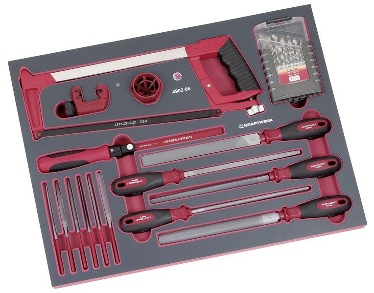 - 35 dílná souprava pilníků, vrtáků a pilky - přesné a praktické uložení nářadí v pěnové výstelce - určeno pro vozíky B107, B117, P205, P207, P206, P306, P308, EXTRA LARGO, P203