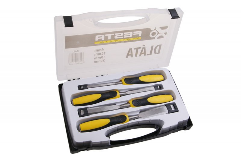 - 4 dílná souprava dlát - s ergonomickou rukojetí z bukového dřeva - úderová plocha s kovovým kroužkem, která zvyšuje její pevnost - pro hobby použití