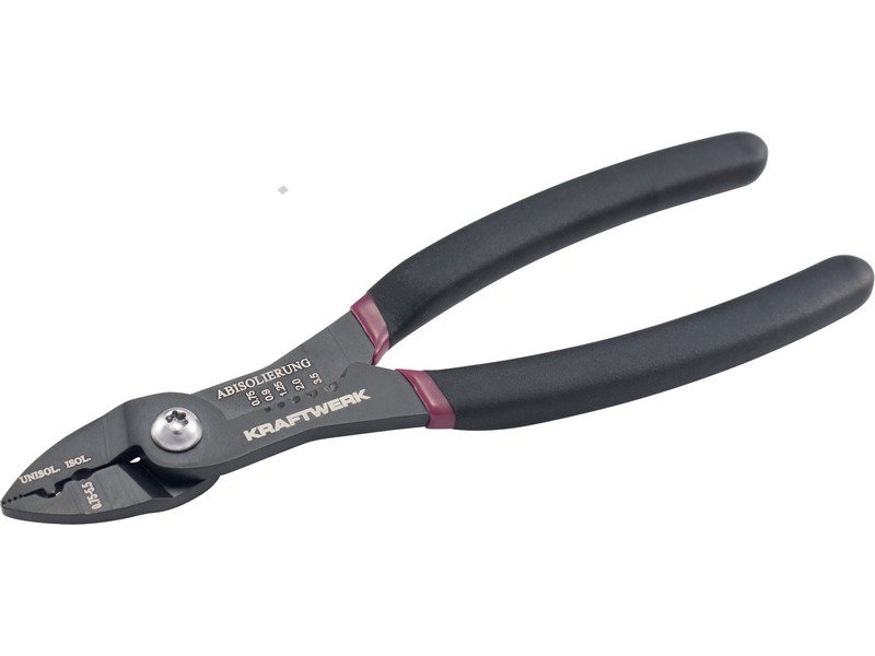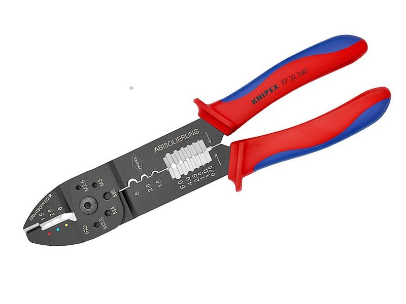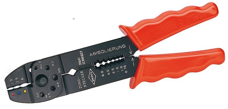 - univerzální konektorovací a odizolovací kleště - tvrzené, broušené ostří - pro profesionální a průmyslové použití - střihač kabelů - konektorovací kleště pro izolované koncovky 1,5 / 2,5 / 6,0 mm2 - střihač svorníků pro velikosti M2,6 / M3 / M3.5 / M4 / M5 - konektorovací kleště pro dutinky 1,5 / 2,5 / 6,0 mm2 - odizolovač kabelů pro kabely 0,75 / 1,0 / 1,5 / 2,0 / 4,0 / 6,0 mm2