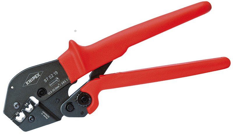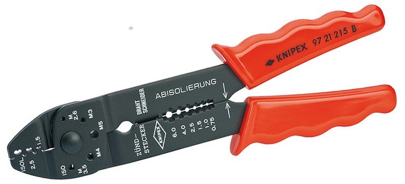 - stříhaní kabelů, odizolování drátů - lisování izolovaných a neizolovaných kabelových ok a konektorů i otevřených konektorů - s otvory se závitem k stříhání měděných nebo mosazných závitových kolíků - M 2,6/3,0/3,5/4,0 a 5,0 mm - speciální ocel, vysoce pevná - na neizolovaná kabelová oka+konektory - kalené kleště - rukojeti s povlaky z umělé hmoty