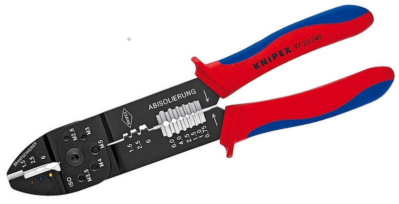 - konektorovací kleště - pro kabelová oka 1,5 / 2,5 / 6,0mm2 - pro ploché zásuvkové koncovky 1,5 / 2,5 / 6,0mm2 - odizolovač kabelů pro kabely 0,75 / 0,9 / 1,25 / 2,0 / 3,5mm2 - pro stříhání kabelů 0,75-5,5mm2